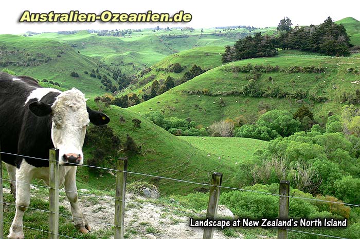 Neuseelands grüne Grashügellandschaft - typisch für die Nordinsel Mit einer gewöhnlichen Heckenschere ist das wohl nicht zu bewerkstelligen...