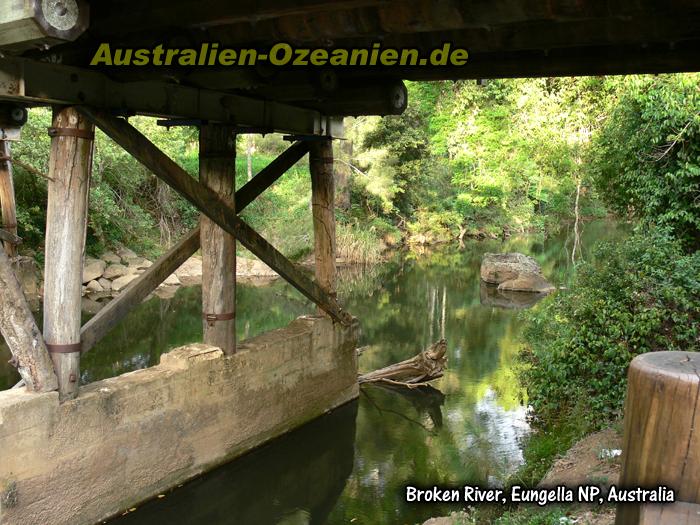 | Das Wasser des Broken River ist kaum in Bewegung, Baden an dieser Stelle daher leider nicht möglich (gesundheitsschädlich). | |||