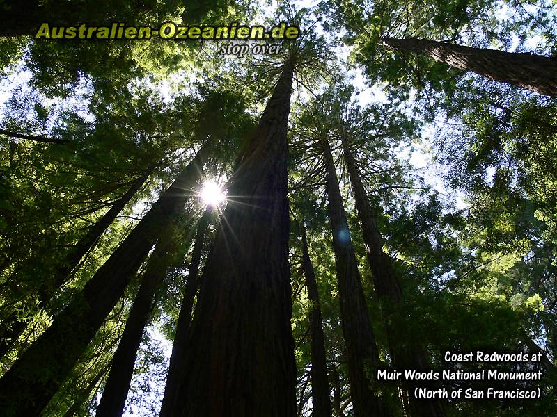Zu empfehlen ist wohl eine Tour auf die in der San Francisco Bay gelegenen ehemaligen Gefängnisinsel Alcatraz mit Führung durch die Festung. Schiffe starten regelmäßig nahe der Fishermans Wharf. Die Golden Gate Bridge liegt abseits des Stadtzentrums etwa eine Stunde Fußmarsch von der letzten Haltestelle entfernt. Zur Erkundung des bekannten Wahrzeichens mietet man sich am besten ein Auto. Auf diesem Tagesausflug sollte man auch den Park Muir Woods nördlich der Golden Gate Bridge besuchen: Hier kann man die riesigen und zum Teil uralten Küsten-Mammutbäume (California Cost Redwoods) bestaunen. Diese Baumart wächst in den Küstenregionen im nördlichen Teil Kaliforniens und hält mit deutlich über 100 Metern den Höhenrekord. Die Redwoods im Muir Woods National Monument sind allerdings kleiner; trotzdem ist ein Spaziergang auf den schön angelegten Wanderwegen beeindruckend! |