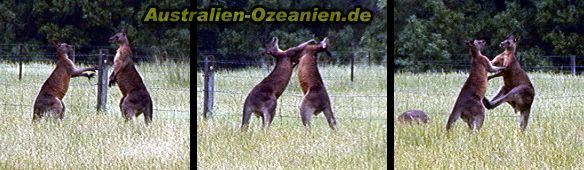 | Von der Terrasse aus kann man beim Frühstück die großen Kängurus beim "Kickboxen" beobachten. | ||