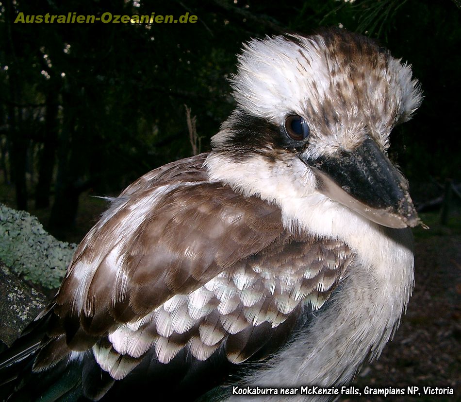 | Kookaburras sind hier erstaunlich zutraulich. Sie lassen sich sogar streicheln! | ||