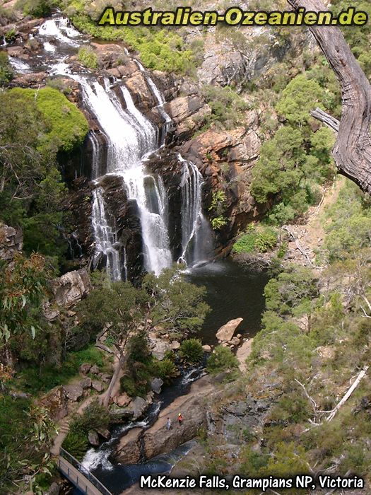 | Eine weiteres Highlight in den Grampians sind die McKenzie Falls. Ein steiler Weg führt über zahlreiche Treppen zum Fuß des malerischen Wasserfalls (der obere Teil der Fälle ist auf diesem Bild nicht zu sehen). | ||