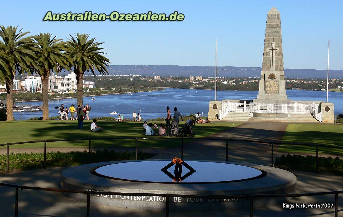 Offensichtlich hat der Boom am Rohstoffmarkt in den letzten Jahren (vor 2007) die Preise wie auch das Preis/Leistungsverhältnis für Übernachtungen verdorben. Obwohl im Vergleich zur Ostküste teuer, waren Unterkünfte in der Nebensaison (November) vielerorts ausgebucht, häufig schmuddelig oder total verranzt! Der Besuch der westaustralischen Nationalparks ist gebührenpflichtig. Ein für den Aufenthalt in WA allgemein gültiger parks pass (fahrzeugbezogen) ist für den Individualtouristen die cleverste Lösung. Diese 1,5 Millionenmetropole ist die abgelegenste Großstadt der Welt und gleichzeitig auch eine der schönsten! Vom prächtigen Kings Park mit seinen gepflegten Anlagen hat man einen eindrucksvollen Blick über den Swan River (der an dieser Stelle mehr einem See gleicht) und auf die Skyline von Perth. Das Zentrum läßt sich ohne Stau erreichen. Noch besser ist es, man nutzt den kostenlosen Busservice vom Kings Park ins Zentrum.